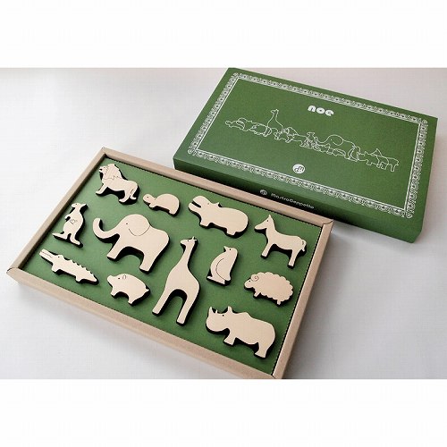 「ノアの方舟」からイメージして生まれた、木の動物セットです。物語を作ってトコトコ歩かせたり、積み木や乗り物おもちゃと組み合わせたり、またインテリアとして長く遊べるおもちゃです。