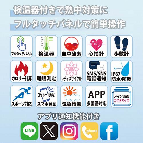 アリアス フルタッチ検温器付きスマートウォッチ