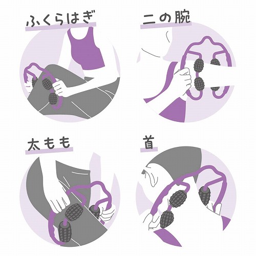 テレビを見ながらや、就寝前のリラックスタイムに。下半身だけでなく、二の腕や首にも使えます。