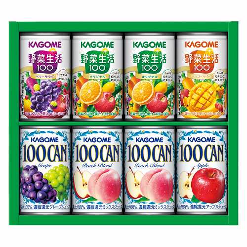 100%フルーツジュースのベストセラー「100CAN」と野菜&フルーツの美味しさが人気の「野菜生活100」の詰合せ。