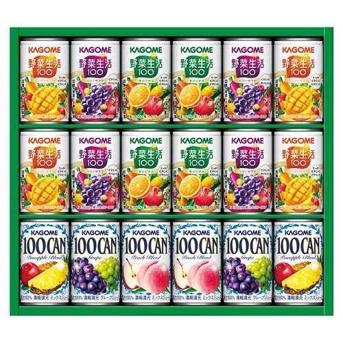 100%フルーツジュースのベストセラー「100CAN」と野菜&フルーツの美味しさが人気の「野菜生活100」の詰合せ。