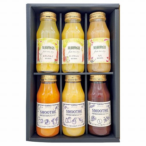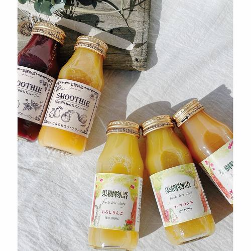 果樹物語(おろしりんご・ラ フランス・もも)(180ml)・スムージー(にんじん&ラ フランス&りんご・りんご&もも&ラ フランス・ぶどう&りんご&ブルーベリー)(180ml)×各1