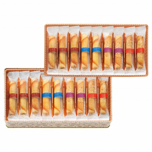 1976年誕生以来、愛され続けるロングセラーのコルベイユ。チュイールやラングドシャ生地で、アーモンドミルクチョコレートやホワイトチョコレートをくるり。