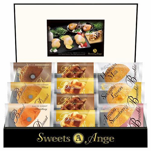 ベルギーワッフル(プレーン・ショコラ)×各2、ベイクドドーナツ(プレーン・ショコラ・ストロベリー)・ブッセ(北海道ミルク・瀬戸内レモン・あまおう苺)×各1