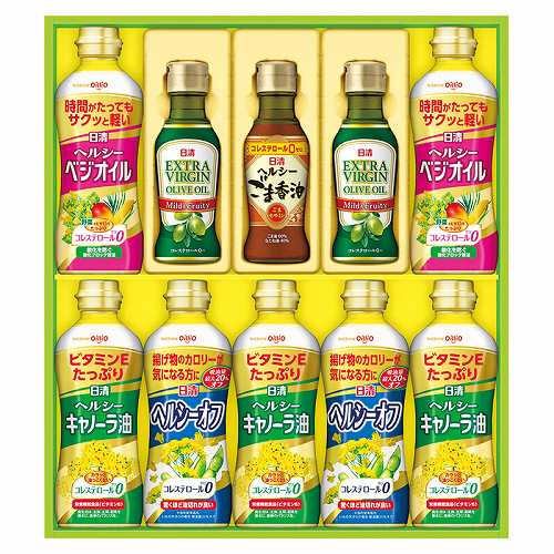 ヘルシーキャノーラ油(350g)×3、ヘルシーベジオイル(350g)・ヘルシーオフ(350g)・EXVオリーブオイル(145g)×各2、ヘルシーごま香油(145g)×1