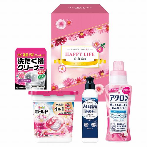 P&Gボールドジェルボール4D(11個)・ライオンアクロンフローラルブーケの香り(450ml)・ライオンチャーミーマジカ除菌+(220ml)・洗濯槽クリーナーローズの香り(50g×2包)×各1