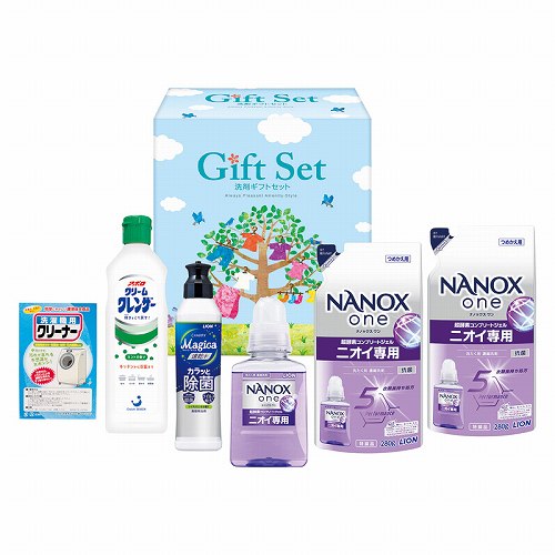 ライオンナノックスワンニオイ専用(380g)・ライオンチャーミーマジカ(220ml)・クリームクレンザー(400g)・洗濯機用クリーナーM×各1、ライオンナノックスワンニオイ専用詰め替え(280g)×2