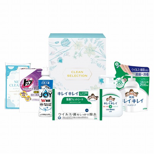 ライオンキレイキレイ薬用液体ハンドソープ(250ml)・ライオンキレイキレイ薬用液体ハンドソープ詰め替え(200ml)・ライオンキレイキレイ除菌ウェットシート(アルコールタイプ)(10枚)・P&G除菌ジョイコンパクト(170ml)・ライオントップクリアリキッド抗菌(25g×2包)・ネットクリーナー(1P)×各1