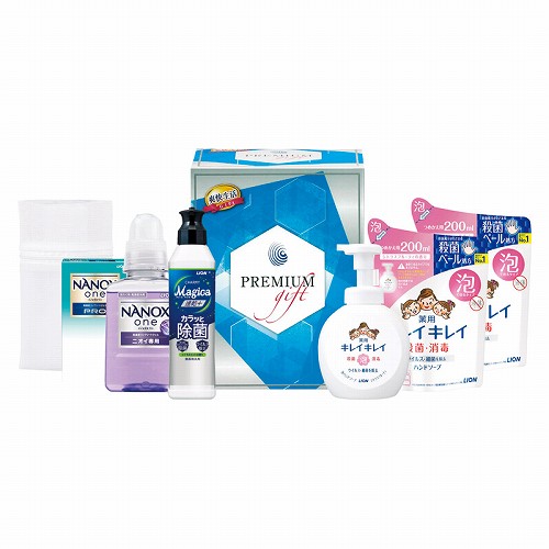ライオンキレイキレイ薬用泡ハンドソープ(250ml)・ライオンNANOXoneニオイ専用(380g)・ライオンNANOXonePRO(2P)・ライオンMagica速乾プラスカラッと除菌(220ml)・洗濯ネット×各1、ライオンキレイキレイ薬用泡ハンドソープ詰め替え(200ml)×2