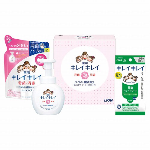 キレイキレイ泡ハンドソープ(250ml)・キレイキレイ除菌ウェットシートアルコールタイプ(10枚)・キレイキレイ泡ハンドソープ詰め替え(200ml)×各1