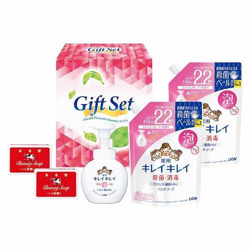 ライオンキレイキレイ薬用泡ハンドソープ(250ml)×1、ライオンキレイキレイ薬用泡ハンドソープ詰め替え大型(450ml)・牛乳石?赤箱×各2