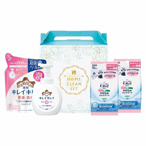 ライオンキレイキレイ薬用泡ハンドソープ(250ml)・ライオンキレイキレイ薬用泡ハンドソープ詰め替え(200ml)×各1、花王ビオレu除菌やわらかウエットシートノンアルコール(10枚)×2