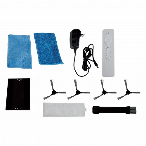 本体(約290×290×76)・ACアダプター・フロアーモップホルダー・お手入れブラシ・リモコン×各1、集塵フィルター・サイドブラシ(右・左)・フロアモップシート×各2