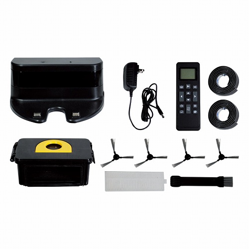 本体(約320×320×85)・ACアダプター・充電ステーション・リモコン・お手入れブラシ×各1、集塵フィルター・サイドブラシ(右・左)・マグネットシールド(1m)×各2