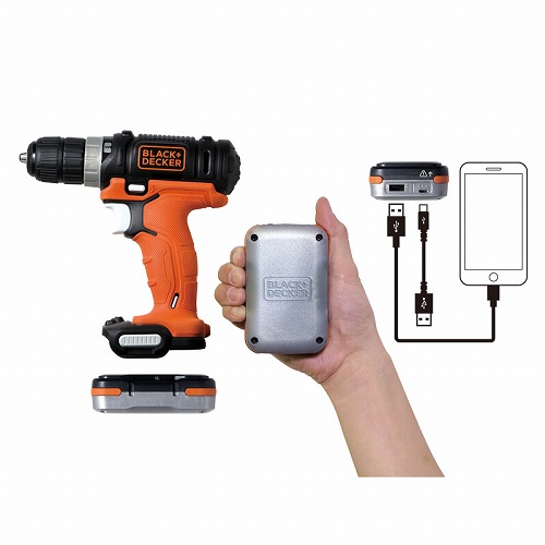 電動工具だけではなく、スマホなどのモバイルデバイスの充電にも活用が可能なドリルドライバー。USBの出力ポートを搭載しているGoPakバッテリーを採用。細かい作業が容易な軽量・コンパクトなボディ。■10.8Vリチウムバッテリー充電式■充電時間:約2時間(付属のケーブル・ACアダプタ使用時)■無負荷回転数:0-550回転/分■最大締め付けトルク:26N・m■クラッチ数:11段階(ドリルモード含む)■チャック能力:1〜10■スイッチ:無段変速■最大能力目安:木工穴あけφ25、金工穴あけφ10、ネジ締め75長