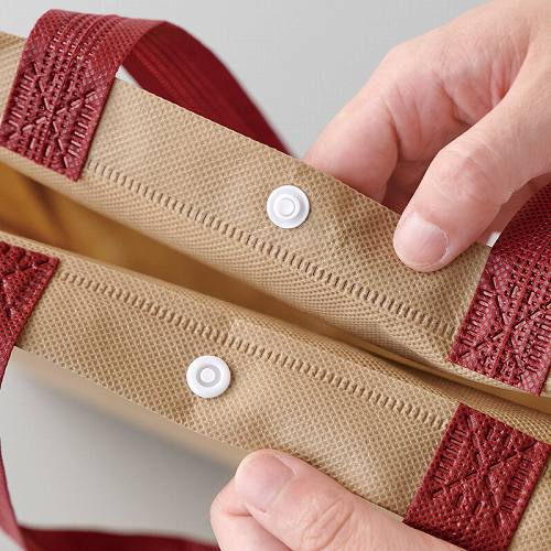 ボタン付きで中身の飛び出しが防げる、おしゃれなツートンカラーの不織布トートバッグです。