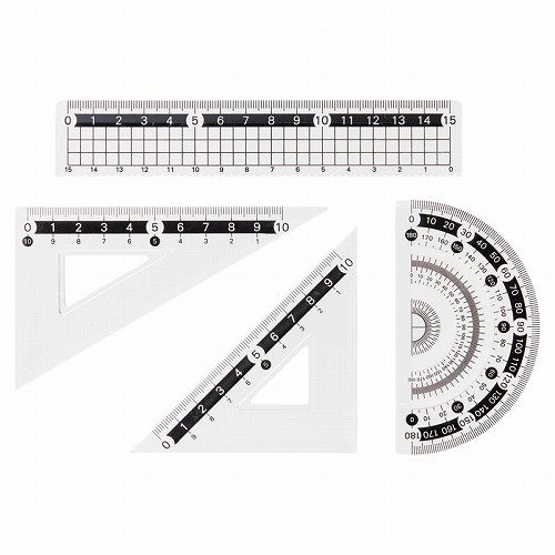 15直定規・三角定規(二等辺)・三角定規(直角)・分度器×各1