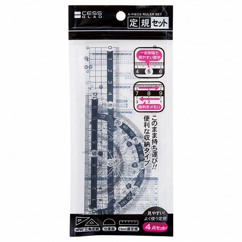 見やすい、よく使う定規4点セット。収納タイプでジップパックパッケージ。