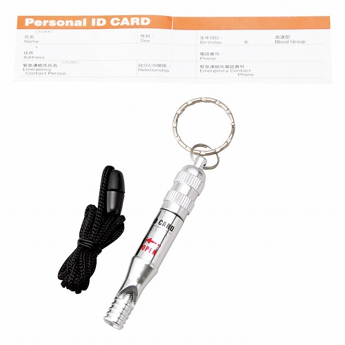緊急時に居場所を伝えるだけでなく、必要事項を伝えたり身元確認にも使えるIDカード付。携帯に便利なペンダントタイプ。
