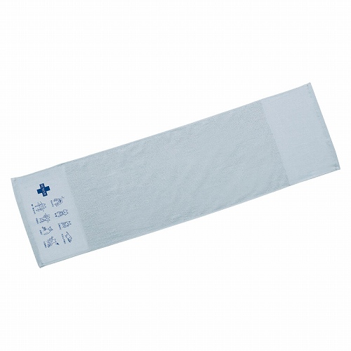 非常時のいろいろな場面に役立つロングタオル。止血や三角巾の代わりや、防寒や日よけ、煙・ホコリ避けまた汗拭きや入浴時などに使えます。