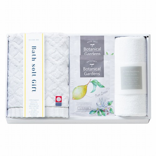 バスソルト(レモン)(25g)・バスソルト(セージ)(25g)・マイクロファイバークロス(250×250)・ウォッシュタオル(280×300)×各1