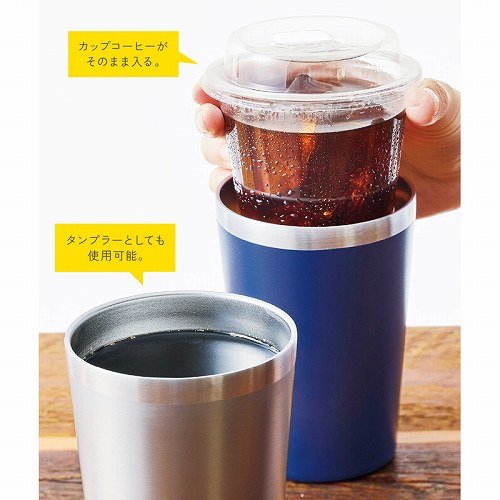 カップコーヒーをしっかり保冷&保温。結露や水濡れもしっかり防ぎます。タンブラーとしても使える2WAY仕様。