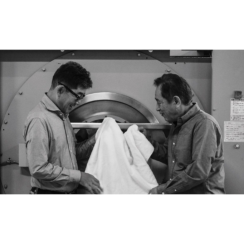 こだわりぬいた素材と秘伝の製法、真剣なまなざしと溢れる愛情、ふたりの匠が追い求めた笑顔のものづくり。まるで空気を紡いだように軽やかな今治タオルを天然水でやさしく洗い上げたやわらかさが持続し、使うほどに愛着のわく、理想的なタオル。