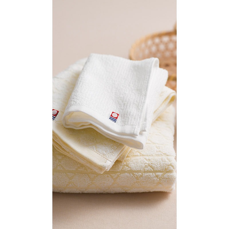 伊予の穏やかな地で百三十年の伝統が織りなす季節を紡ぐ、「かごめ紋様」と「あぜ織布」の日本の伝統的な模様をあしらったやさしい色合いの今治タオルです。