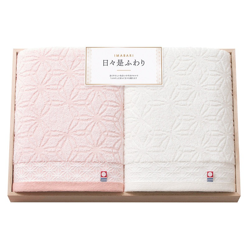 日々の暮らしをふわりと包み込んでくれるような、淡くやさしい色合いの今治タオル。淡くやさしいピンクとアイボリーの二色は日本の伝統的なお祝い色「紅白」を思わせる色彩で、結婚や出産など晴れの日の贈りものとしてぴったりです。また上品な佇まいで、「感謝」を込めた大切な贈りものとして、お祝いだけでなく様々な用途に最適です。