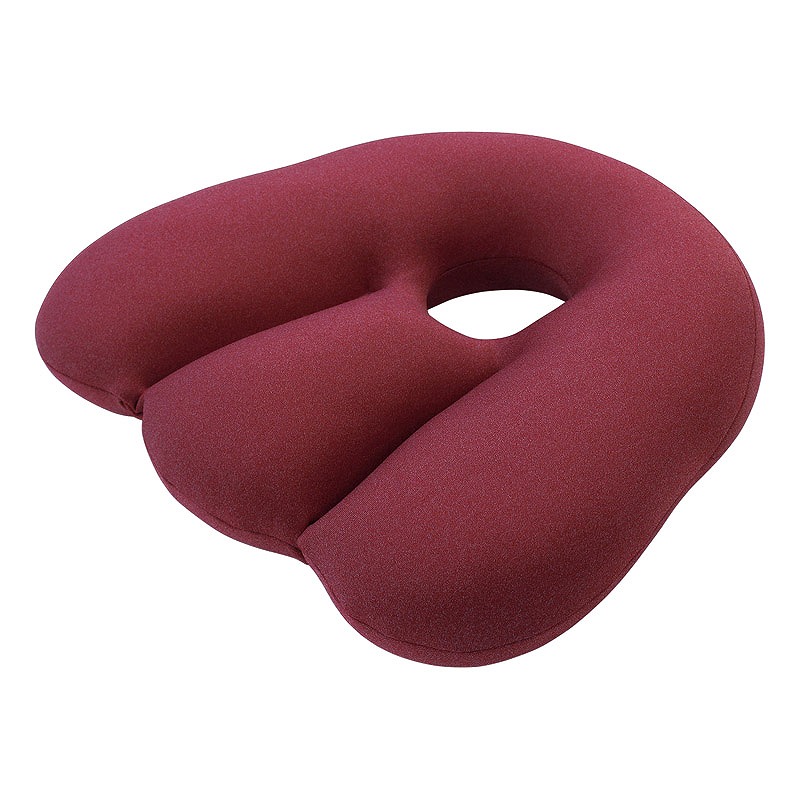 座るとおしりを持ち上げるように穴の後ろ部分が膨らみ、綺麗な姿勢を取りやすくします。背当てとしてもお使いいただけます。