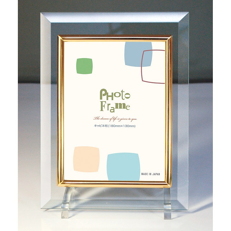 透明感が美しいガラス製のフォトフレームです。 2L=キャビネサイズ(180×130mm)対応で、PCからプリントした写真紙などにもご使用いただけます。縦横兼用別離スタンド付き(プラスチック)