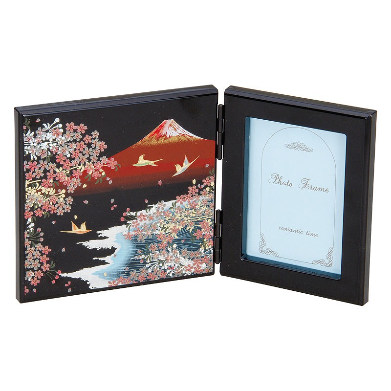 精密な山中蒔絵で桜と赤富士を表現しました。