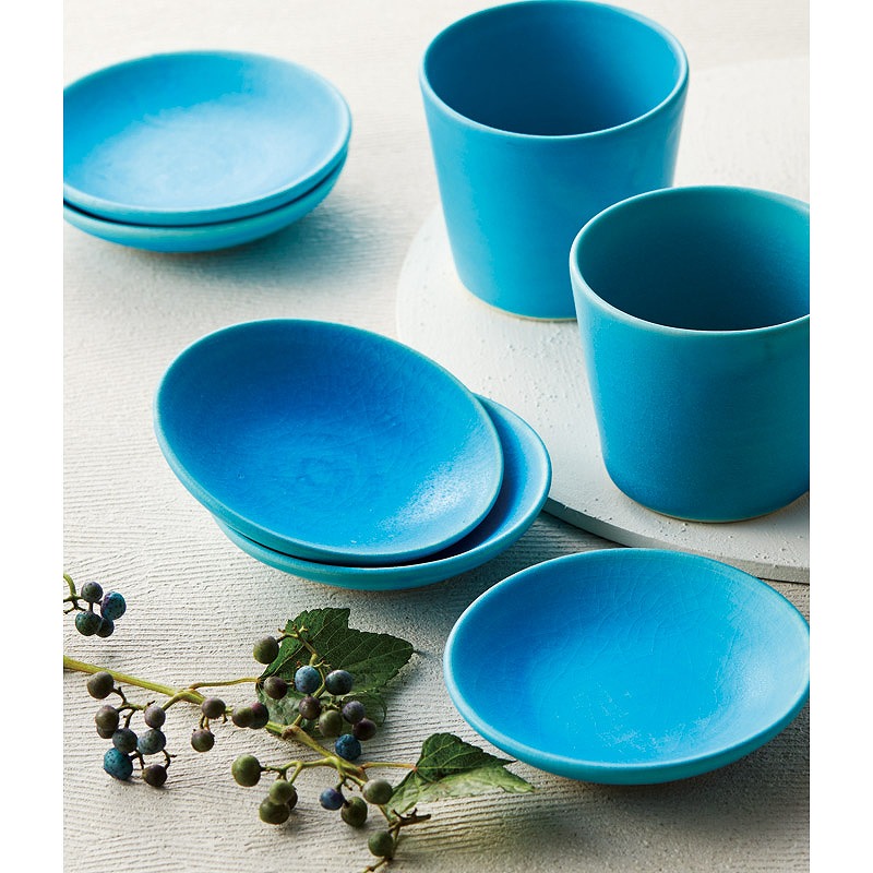 艶やかなトルコブルーが印象的な器。インスタ映えすること間違いなし。窯から出るまでその色合いが作り手にも読めない個体差のあるきれいな器。