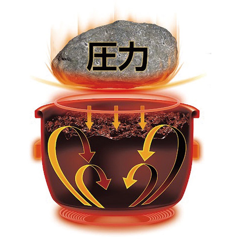 強火で炊き続け、うまみを引き出す「豪熱沸とうIH」炊き方が選べる「白米炊き分け3コース」30時間おいしく保温できる「うるつや保温」釜全体に熱が伝わる黒まる厚釜。環境に配慮したバイオマスプラスチック素材Prasusを採用した「立つしゃもじ&計量カップ」