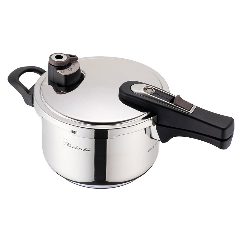 2段階圧力切替でお料理に合わせて設定可能。焦げ付きにくい底三層構造。ガスはもちろん、200V電磁調理器でもお使いいただけます。料理研究家 浜田陽子先生のレシピ付。