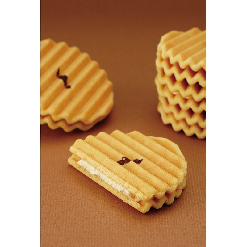 さっくりとした口あたりのドイツ風堅焼きワッフルにヴァニラ風味のクリームを合わせた洋風煎餅。
