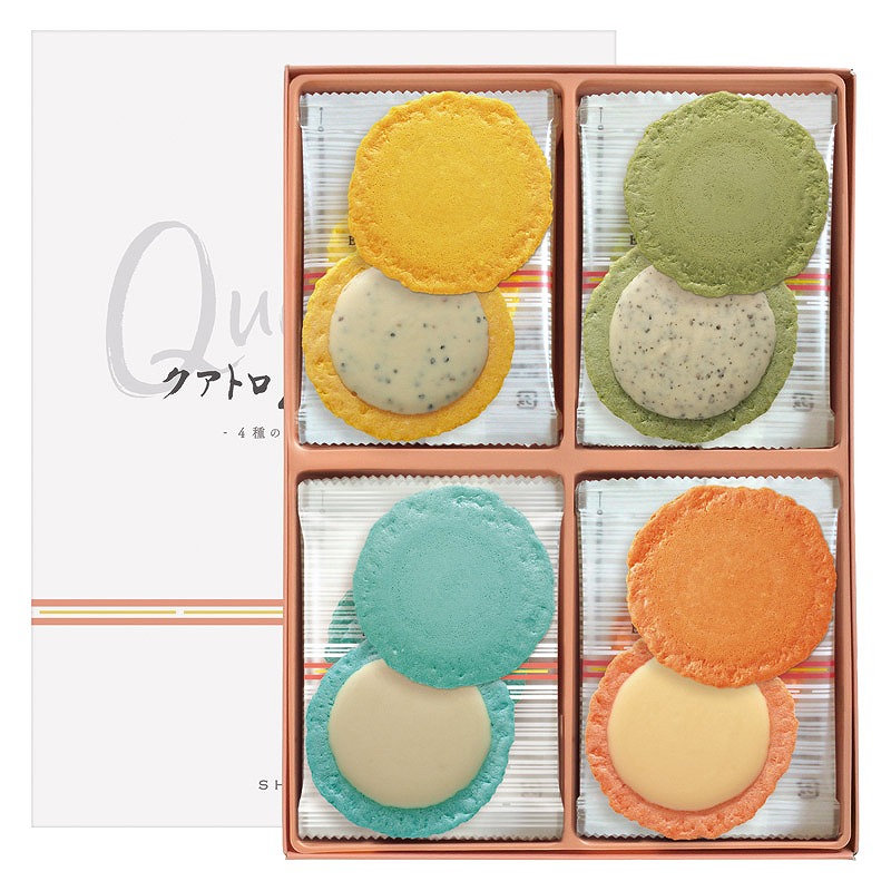 クアトロ(QUATTRO)とは、イタリア語で「4」を表す言葉。志満秀オリジナルの4種のチーズクリームをえびせんべいでサンド。例えばモッツァレラとバジル、ブルーチーズと蜂蜜はイタリア料理でおなじみのコンビ。お気に入りのワインのおともに、またパーティやお茶会など様々なシーンでお楽しみいただけます。