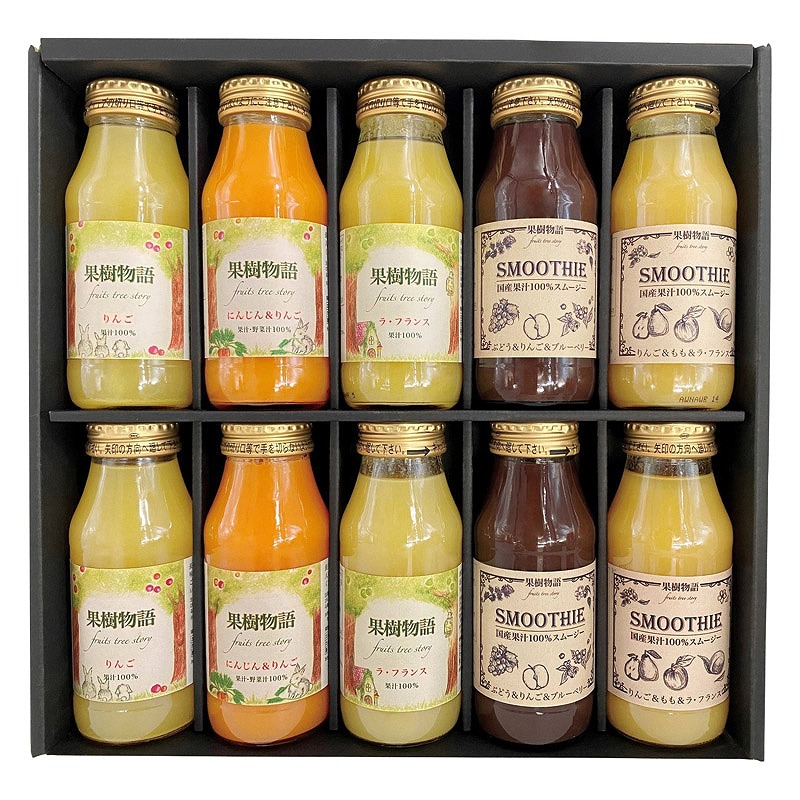1本に3種類の国産素材を使用したストレート果汁・野菜汁100%のフルーツスムージーと、ストレートジュースのセットです。本物の味を知る果物農家がみずから選んだ素材そのままの味を独自のノウハウでとじこめました。
