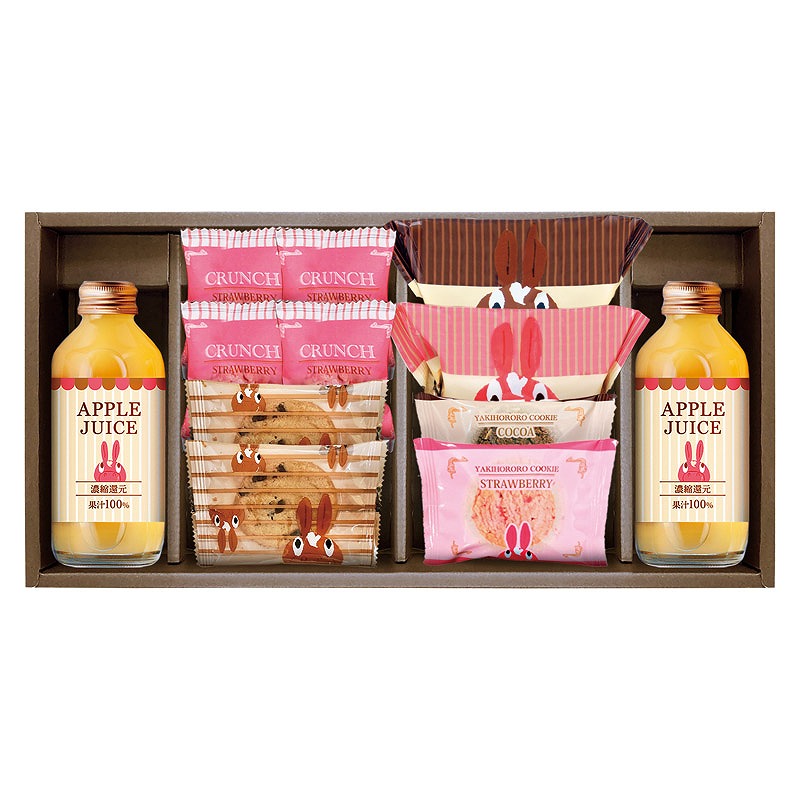 チョコクランチ(ストロベリー)×4、ナッツとチョコのざっくりクッキー・アップルジュース(180ml)×各2、焼きドーナツ(ストロベリー・チョコ)・焼きほろろクッキー(ココア・ストロベリー)×各1