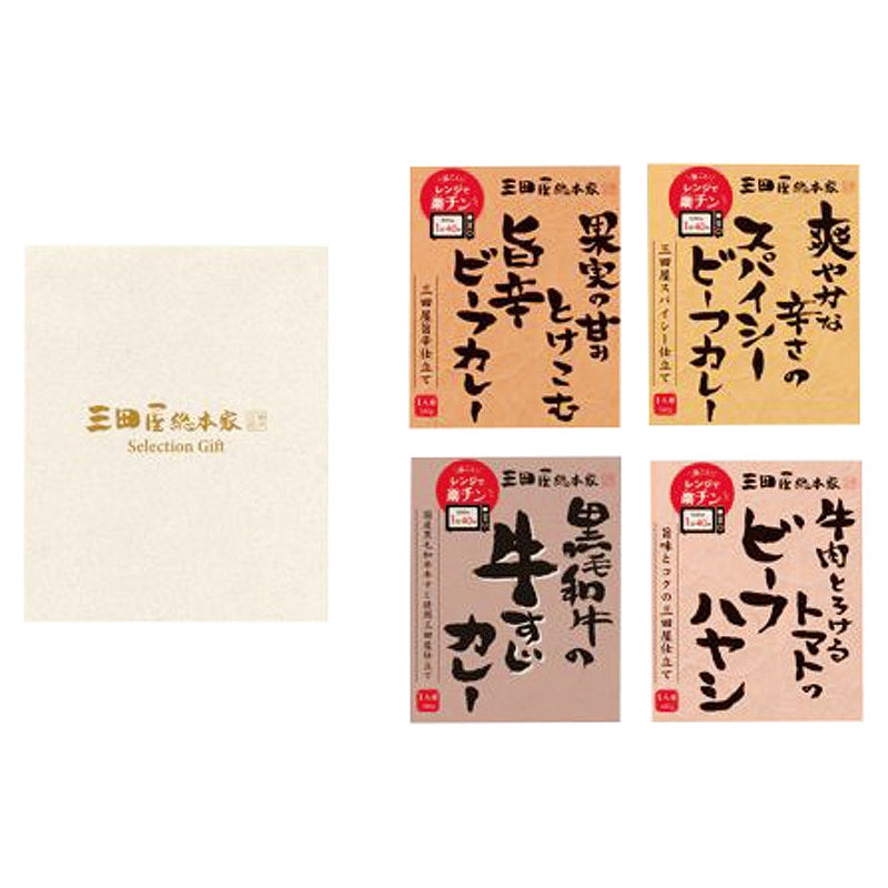 果実の甘みとけこむ旨辛ビーフカレー・爽やかな辛さのスパイシービーフカレー・牛肉とろけるトマトのビーフハヤシ・黒毛和牛の牛すじカレー(各180g)×各1
