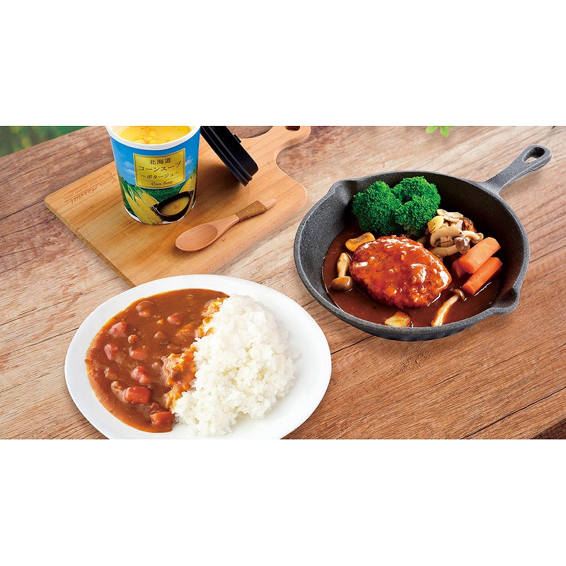 北海道の素材にこだわった野菜のスープをお湯を注ぐだけで簡単に出来上がるカップスープにしました。レトルトのカレーやハンバーグをセットにしたお手軽なグルメセットです。