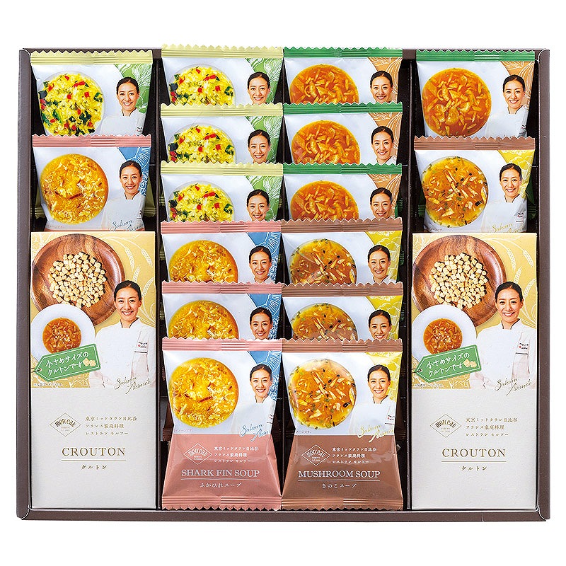 フランス家庭料理レストランmorceau 秋元さくら監修のフリーズドライスープギフト。豊かな4種のスープとクルトンのギフトセットです。