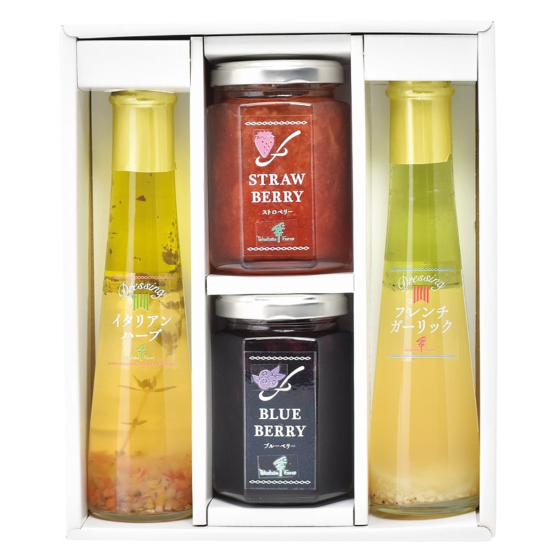 ジャム(ストロベリー・ブルーベリー)(各145g)・ドレッシング(イタリアンハーブ・フレンチガーリック)(各122ml)×各1