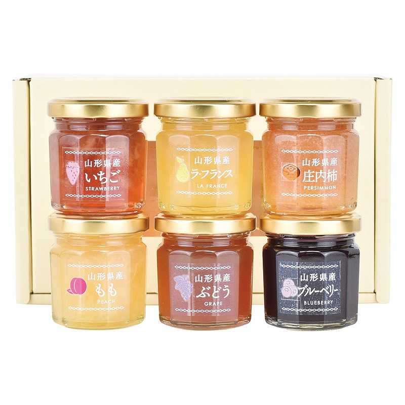 ミニジャム(山形県産いちご・ラフランス・庄内柿・もも・ぶどう・ブルーベリー)(各55g)×各1