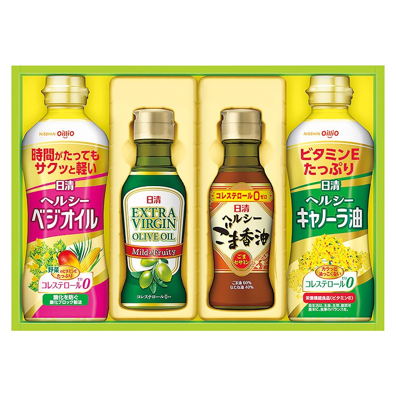 ヘルシーキャノーラ油・ヘルシーベジオイル(各350g)・エキストラバージンオリーブオイル・ヘルシーごま香油(各145g)×各1