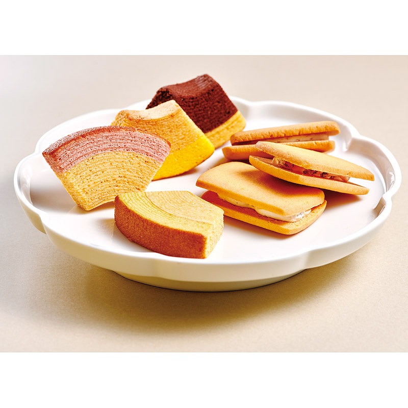 一層一層丁寧に焼き上げた生地と、果汁を加えて仕上げた生地の2つの味が絶妙なハーモニーの「フルーツクーヘン」。なめらかで口当たりのやさしいフルーツクリームと香り豊かな果肉を香ばしいクッキーでサンドした「フルーツサンド」の詰合せです。