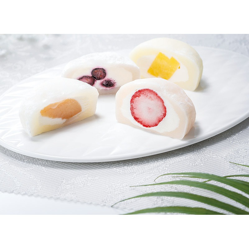 優しい甘みのクリームとふわふわのお餅で果物を包みました。とろける食感をお楽しみください。冷蔵庫で2時間程度解凍してお召し上がりください。