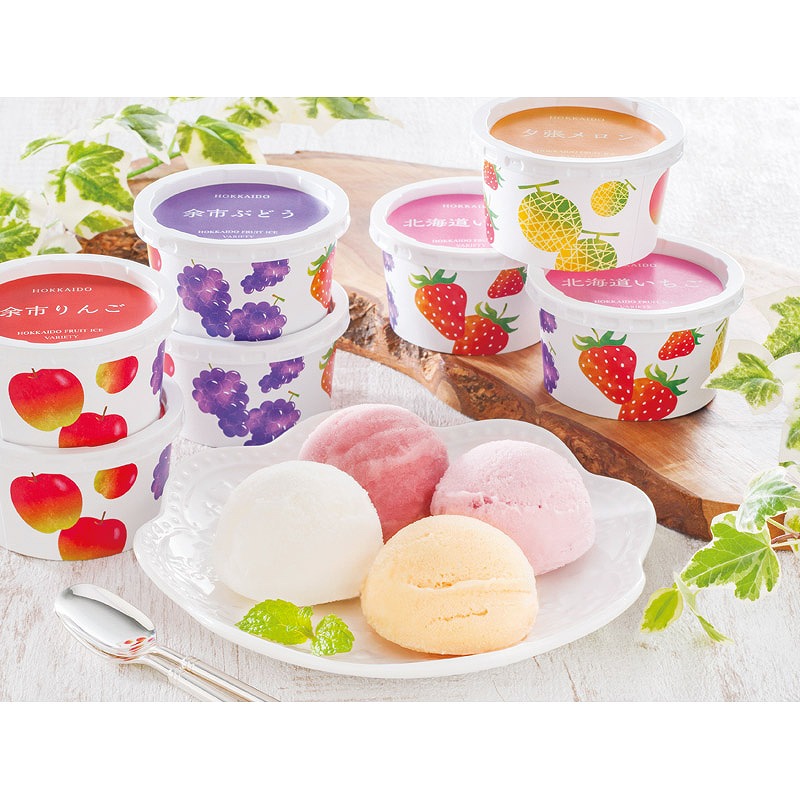 北海道の4種類のフルーツのおいしさを詰め込んだ風味いっぱいのアイスです。子供から大人まで幅広くお楽しみいただけるバラエティギフトです。