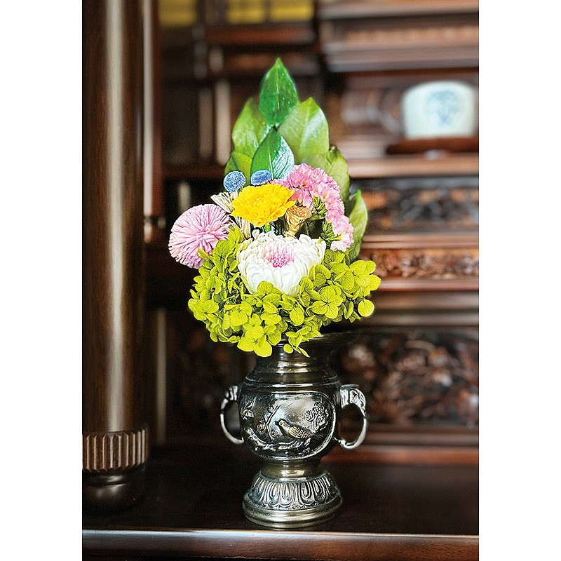 水やり不要で長持ち。美しい状態が長持ちし経済的です。伝統的な仏花でどんな仏壇にもしっくりくる形になっています。