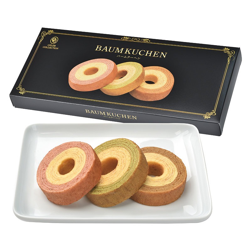 3種の2層バームクーヘンが入ったセット。各種記念、販促でどうぞ